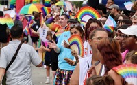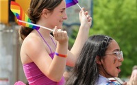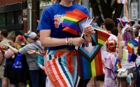 Indy Pride coincided with NoKings, a protest againt the wanna-be authoritarian regime that is attacking American people and institutions. The parade was immediately before the protest and just a few blocks away, so quite a few people brought the energy and love from the parade to the march, which was amazing and exactly what we need to combat their hate.