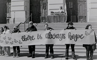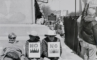 Joined the #FP4Party on Bluesky, celebrating the venerable Ilford FP4+ black&white film. I ran two rolls through my Pen D: one while out cycling mostly, and the other during the No Kings 3 protest. I developed the film at home using Caffenol homebrew with the harmony recipe for 8 minutes.